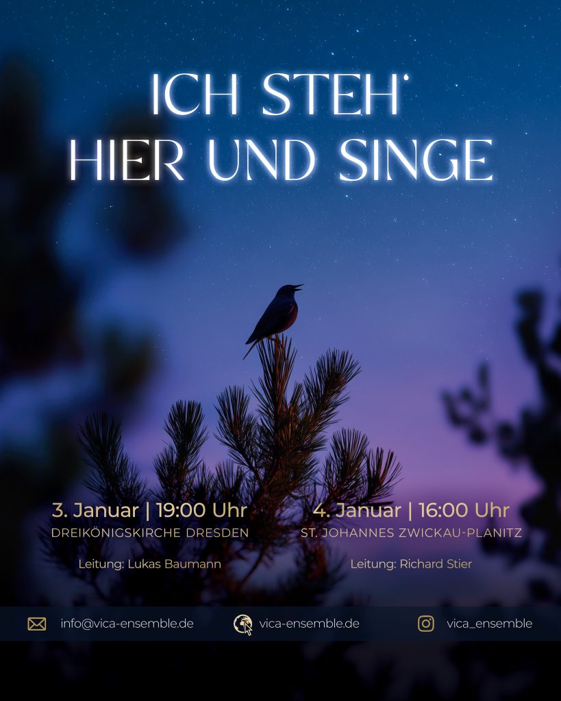 Am vergangenen Wochenende läutete das VICA Ensemble das neue Jahr 2026 mit zwei besonderen Konzerten unter dem Titel „Ich steh‘ hier und singe“ ein.