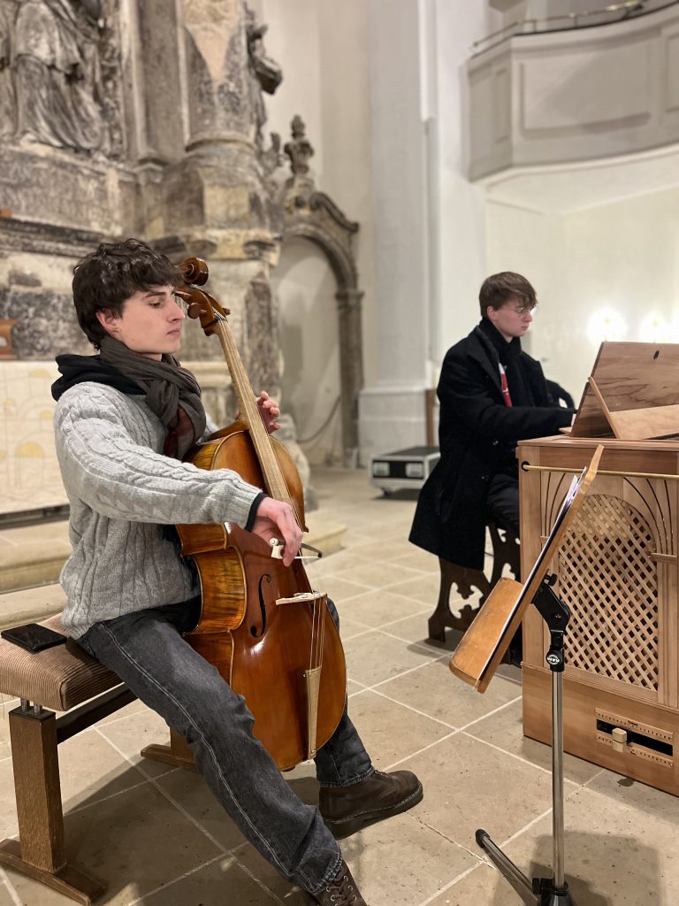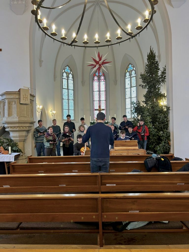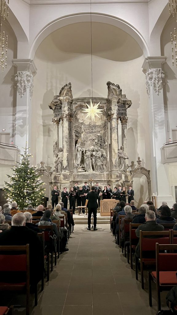Im Zentrum des Programms stand die Bachmotette „Jesu, meine Freude“, welche durch anspruchsvolle geistliche und weltliche A cappella Chorliteratur zum Jahresanfang stimmungsvoll eingebettet wurde. Paul Garnier (Barockcello) und Anton Matthes (Truhenorgel) rundeten das Programm darüber hinaus mit einer Telemann-Sonate virtuos ab.
